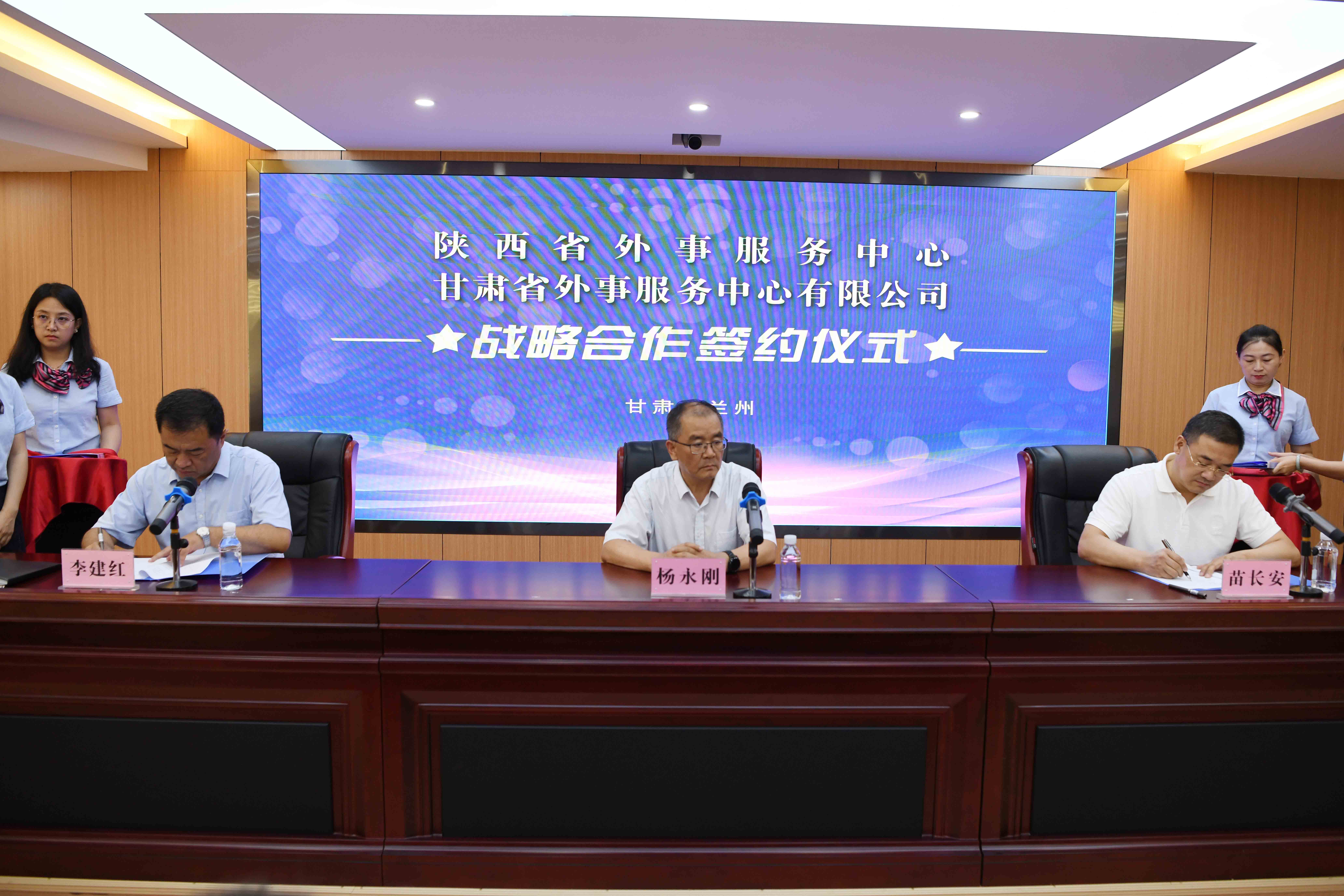 省政府外事辦二級巡視員楊永剛、陜西外服總經(jīng)理苗長安、甘肅外服總經(jīng)理李建紅出席并成功簽約。